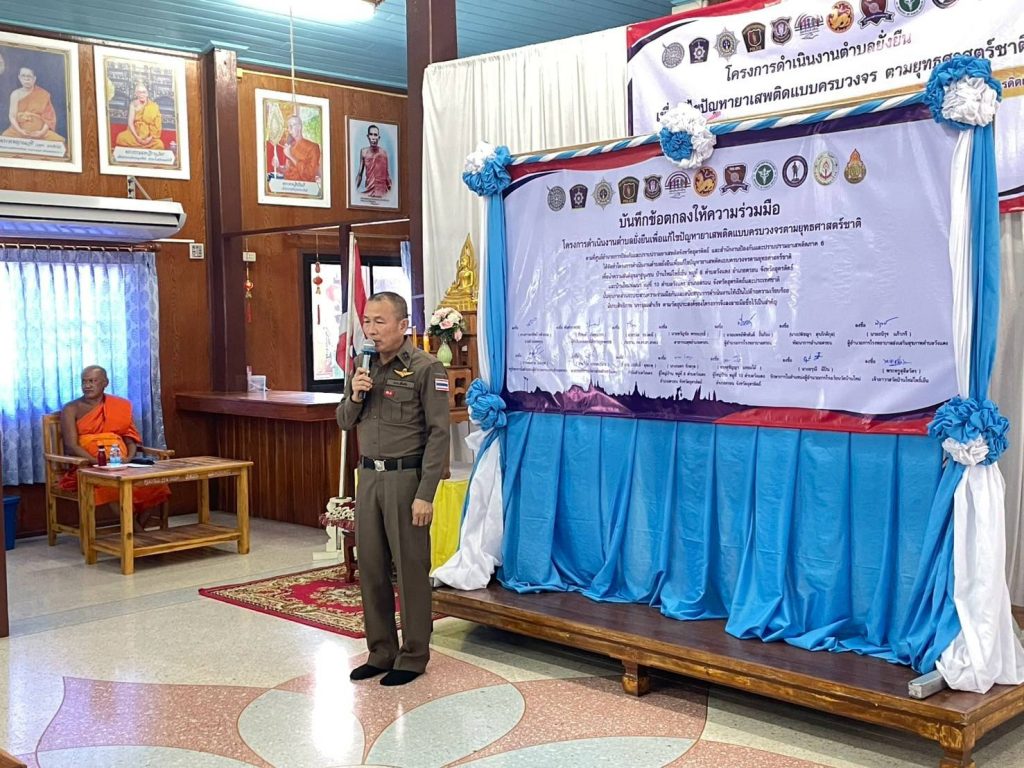 วันที่ 11 มี.ค.2568 เวลา 13.00 น. โดย นายชลิต ธนวัฒน์ รอง นายกองค์การบริหารส่วนจังหวัดอุตรดิตถ์ ประธาน กต.ตร.สภ.ตรอน, พ.ต.อ.ศิรพงศ์ เกิดคุณากร ผกก.สภ.ตรอน กรรมการ กต.ตร.สภ.ตรอน พ.ต.ท.ธรรมนูญ หม่องอ้น รอง ผกก.ป สภ.ตรอน(กรรมการ กต.ตร.สภ.ตรอน) พ.ต.ท.ธวัชชัย คำสวน สวป.สภ.ตรอน (กรรมการ กต.ตร.สภ.ตรอน) พ.ต.ต.ปรีชา โตเย็น สว.อก.สภ.ตรอน(เลขานุการ กต.ตร.สภ.ตรอน) พ.ต.ต.อนุชา ทิวา สวป.(ชส.)สภ.ตรอน (กรรมการ กต.ตร.สภ.ตรอน) พร้อมชุดปฏิบัติการตำบลยั่งยืนสภ.ตรอนร่วมกับ นายอำเภอตรอน ปลัดอำเภอตรอน กรรมการ กต.ตร.สภ.ตรอน , ผู้อำนวยการโรงพยาบาลตรอน, สาธารณสุขอำเภอตรอน, พัฒนาการอำเภอตรอน, ผู้อำนวยการโรงพยาบาลส่งเสริมสุขภาพตำบลวังแดง, ผู้อำนวยการ กศร. อำเภอตรอน, นายกองค์การบริหารส่วนตำบลวังแดง, เจ้าอาวาสวัดบ้านใหม่โพธิ์เย็น, ผู้ใหญ่บ้าน หมู่ 6 และ หมู่ 10 ตำบลวังแดง ฯ และชาวบ้าน หมู่ 6 หมู่ 10 ตำบลวังแดง ร่วมเปิดพิธีโครงการ ตำบลยั่งยืนเพื่อแก้ไขปัญหายาเสพติดแบบครบวงจรตามยุทธศาสตร์ชาติ โดยมี นางสาวพรทิพย์ นายอำเภอตรอน เป็นประธาน ซึ่งท่านประธานได้มอบนโยบายและแนวทางการดำเนินงาน โครงการดำเนินงานตำบลยั่งยืนเพื่อแก้ไขปัญหายาเสพติดแบบครบวงจรตามยุทธศาสตร์ชาติ ปีงบประมาณ พ.ศ.2568 ในการแก้ไขการแพร่ระบาดของยาเสพติดในชุมชน โดยเสริมสร้างให้ชุมชนเกิดความเข้มแข็ง เข้าใจ และรับรู้ปัญหาพิษภัยของยาเสพติด พร้อมทั้ง ร่วมลงนามข้อตกลง(MOU)โครงการตำบลยั่งยืน ณ วิหารหลวงพ่อทองอยู่ หมู่ที่ 6 ต.วังแดง อ.ตรอน จว.อุตรดิตถ์