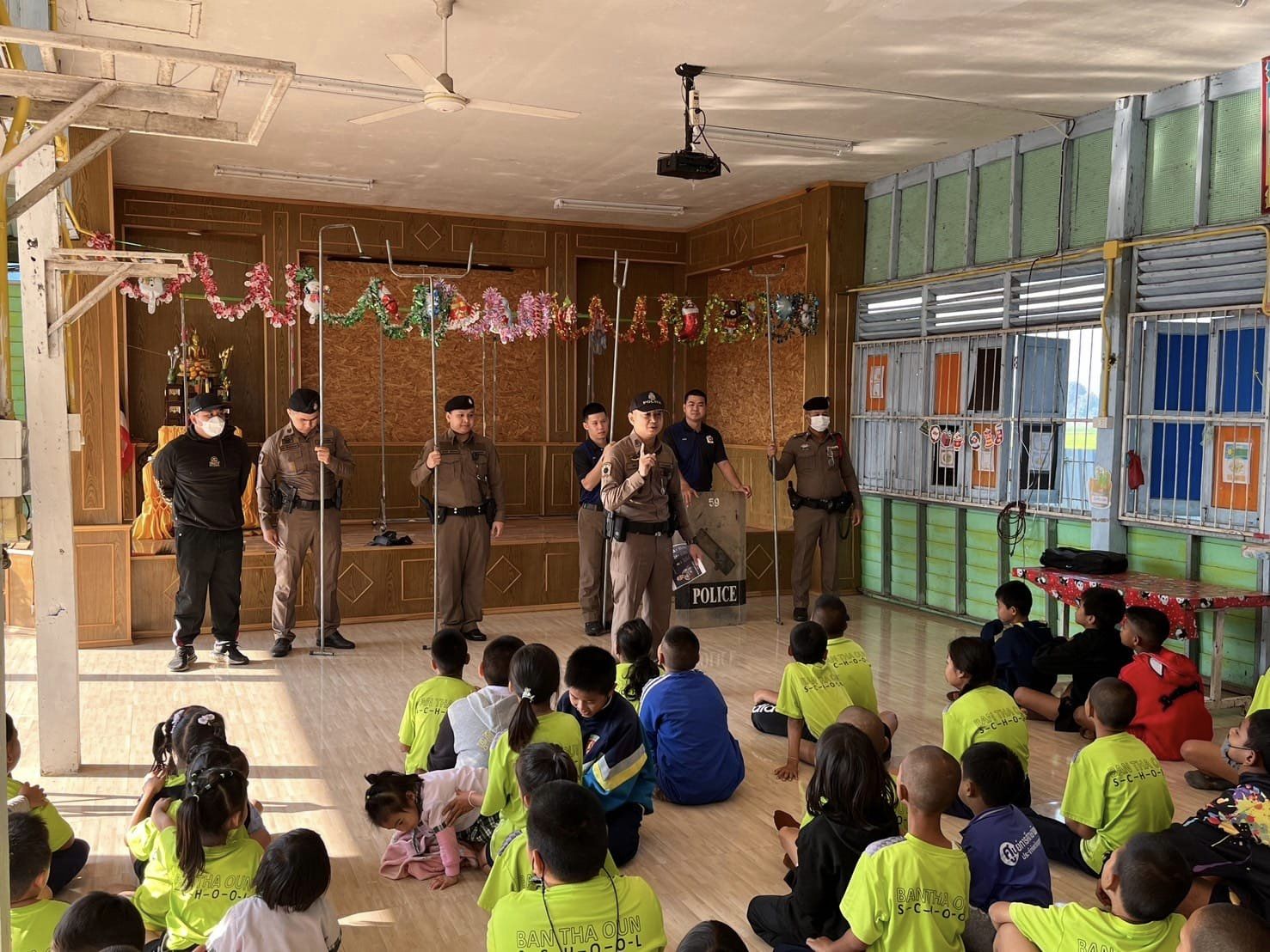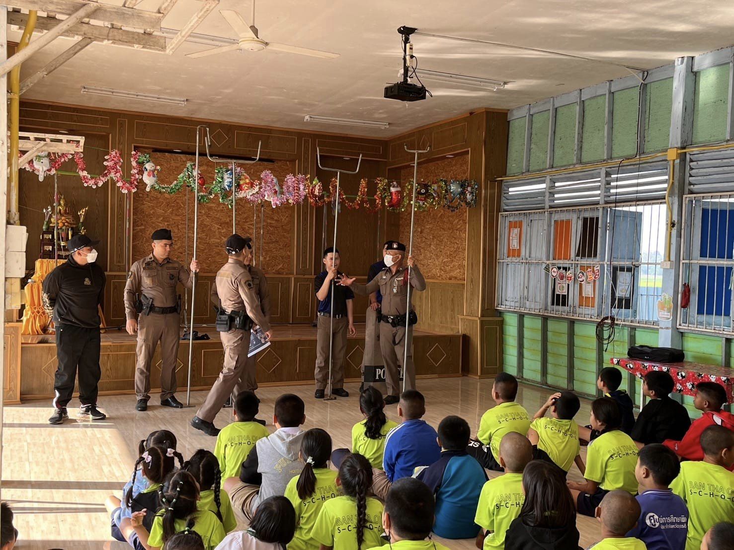 และได้แนะนำและสาธิตวิธีป้องกันบุคคลคลุ้มคลั่งเบื้องต้น ยุทธวิธีไม้ง่าม แนะนำและสาธิตวิธีการเอาตัวรอดเหตุกราดยิง ชุด Active Shooter และการปฏิบัติหากเกิดกรณีดังกล่าว ให้ความรู้เกี่ยวกับเทคโนโลยีออนไลน์ การป้องกันทางเพศในโลกออนไลน์ ให้ความรู้เกี่ยวกับยาเสพติดด