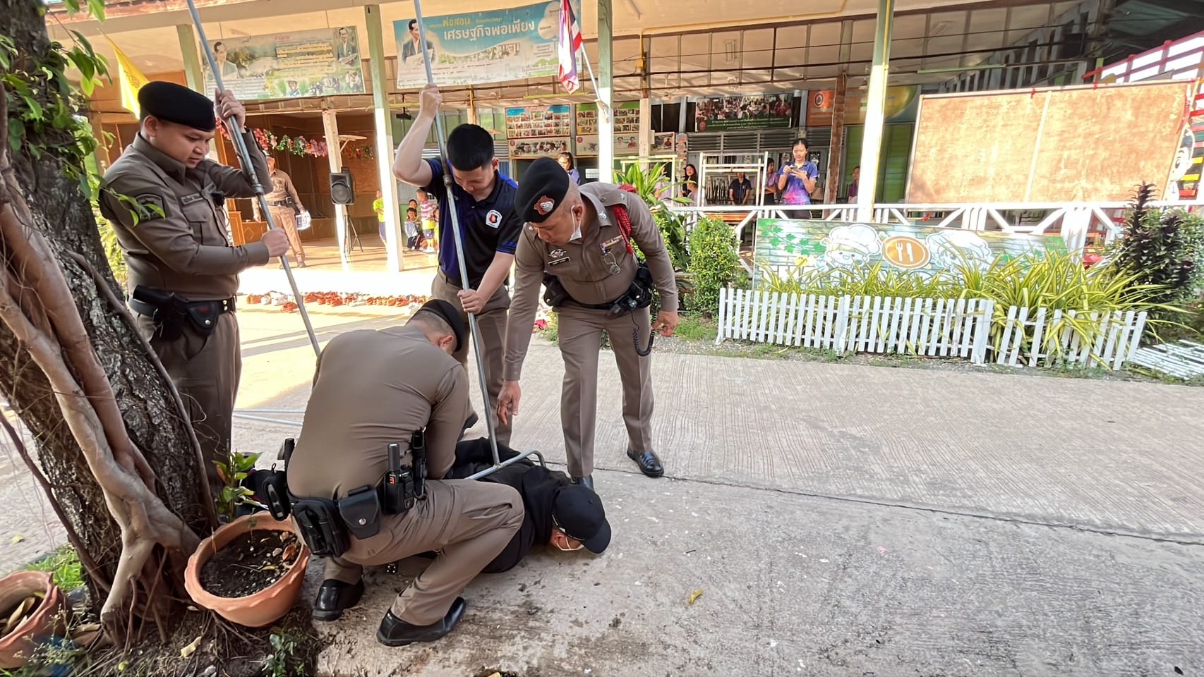 นำโดย พ.ต.ท.ธาวิน สุขพูล รอง ผกก.ป.สภ.ตรอน พ.ต.ต.อนุชา ทิวา สวป.(ชส.) สภ.ตรอน พร้อมด้วยชุด ชมส.สภ.ตรอน สายตรวจรถยนต์ 20