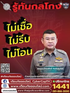 เตือนภัยออนไลน์ ไม่เชื่อ ไม่รีบ ไม่โอน 21 พฤษภาคม 2566 โดย ยืนยัน / ข่าวประชาสัมพันธ์ FacebookFacebookXXLINELine