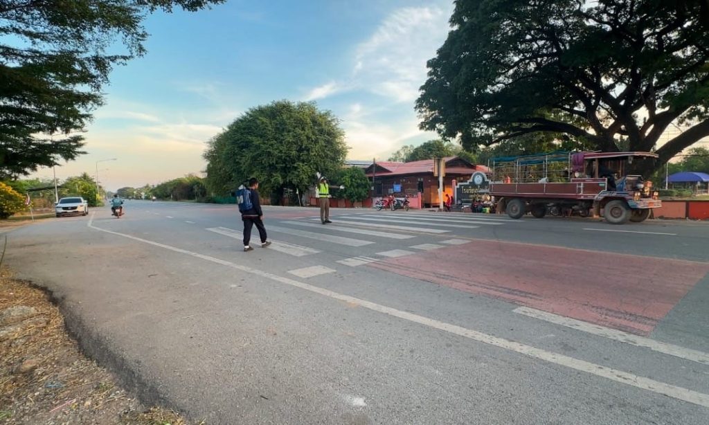 พ.ต.ต.อนุชา ทิวา สวป.(ชส.) สภ.ตรอน พร้อมด้วย ชุดปฏิบัติการงานจราจร อำนวยความสะดวกจัดการจราจรหน้าโรงเรียนบ้านวังแดง(สหจิตวิทยาคาร)