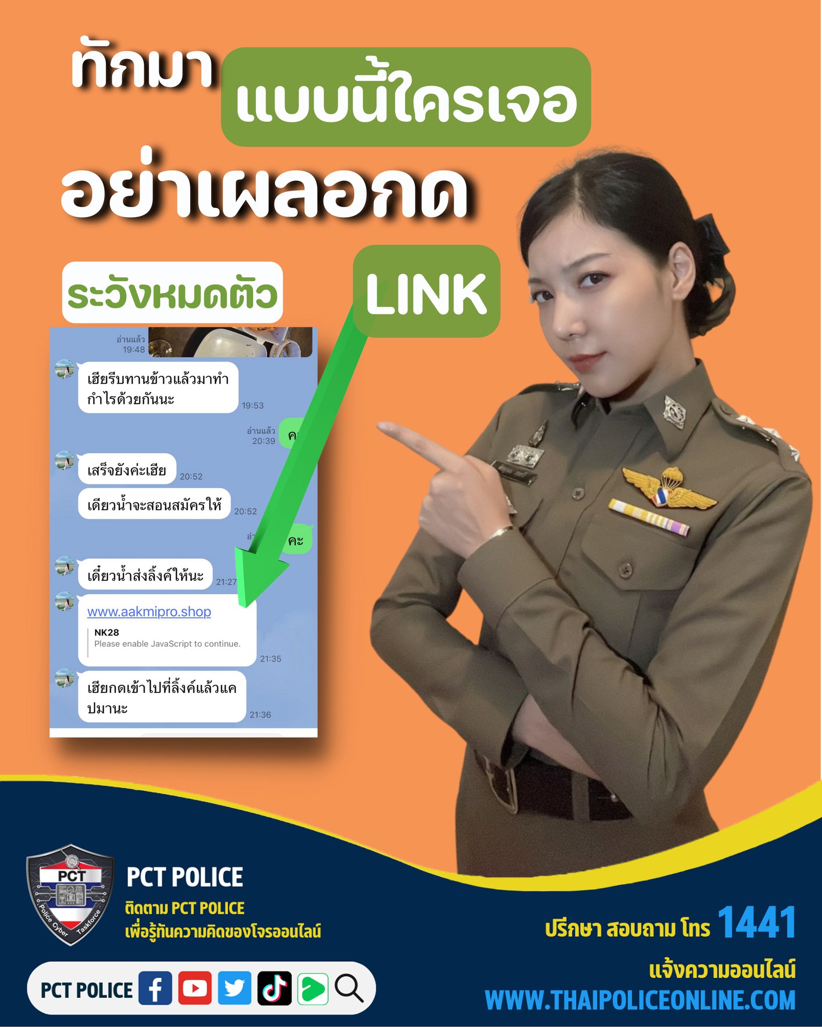 หากได้รับโทรศัพท์อ้างเป็นเจ้าหน้าที่รัฐแจ้งให้คลิกลิงก์ โหลดแอป อย่าหลงเชื่อ แนะนำ ให้ โทร.ตรวจสอบก่